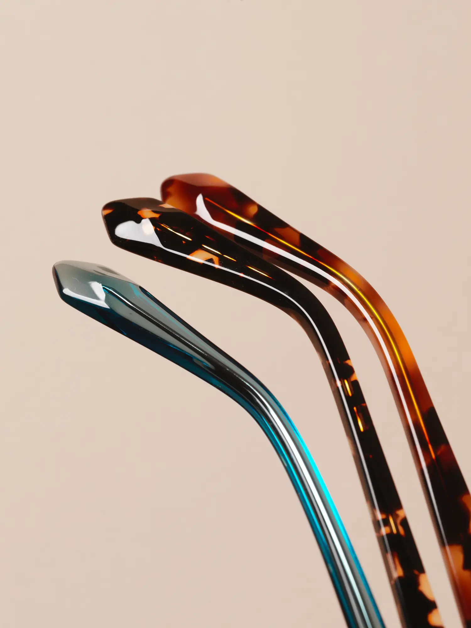 The cellulose acetates comprising the collection have been meticulously chosen from suppliers such as Mazzucchelli 1849 and Laes, all of which are entirely produced in Italy. The decision to collaborate exclusively with Italian artisans and utilize Italian raw materials aligns with the goal of elevating the creativity, craftsmanship, and quality that have long defined Made in Italy production. The aim is to create products transcending trends and time, emphasizing the inherent value and beauty of each design and, above all, enhancing the elegance and simplicity of every wearer's face.